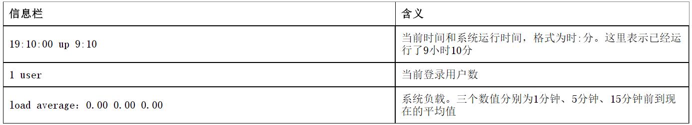 top命令顯示的前5行是統(tǒng)計(jì)信息,第一行是基本信息。