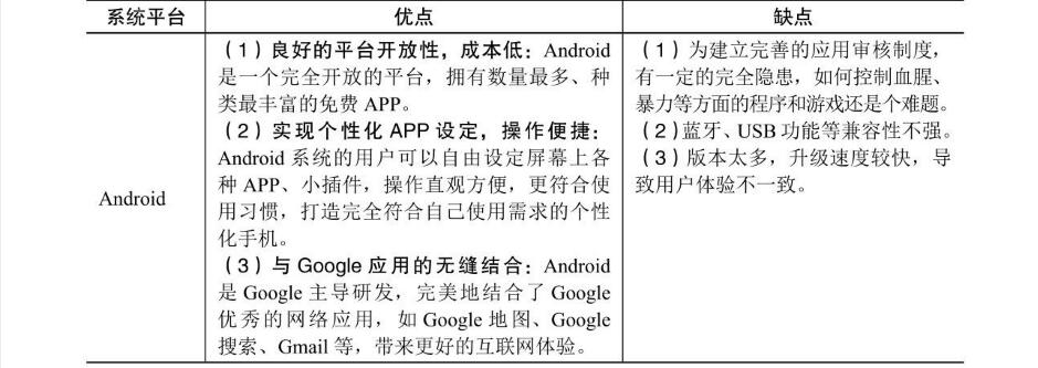 表1.1三大手機(jī)系統(tǒng)平臺(tái)的優(yōu)點(diǎn)和缺點(diǎn)對(duì)比
