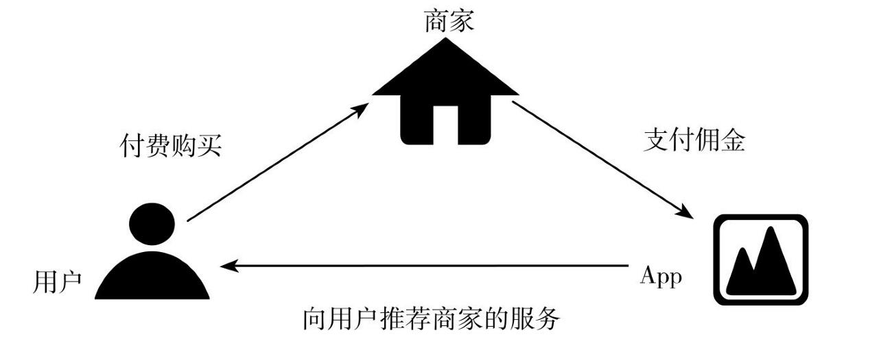 這是一種比較新穎的盈利模式,尤其是適用于家裝、美妝、美食等行業(yè)。這種模式下,App主要職責(zé)是向用戶推薦相關(guān)商家的購買鏈接,在這個過程中App向商家收取傭金,如圖2-18所示。