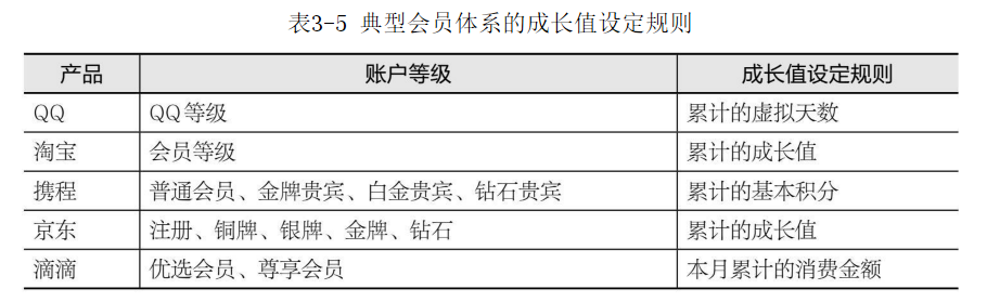 網(wǎng)站設(shè)計(jì)公司資深規(guī)劃工程師下面列舉幾個(gè)典型會(huì)員體系,看一下成長值的設(shè)定區(qū)別,見表3-5。