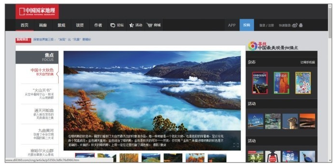 圖4 中國國家地理雜志網(wǎng)站首頁