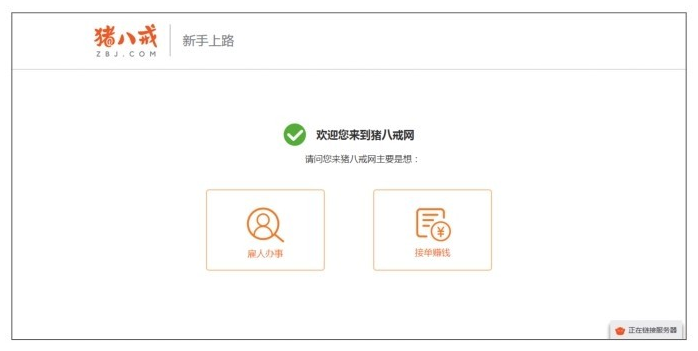 再如服務(wù)眾包平臺豬八戒網(wǎng)站在用戶注冊成功后的“新手上路”頁面(見圖6)中就是按照用戶來分類,頁面中共分有兩種角色,一個是雇人辦事的雇主,另一個是接單賺錢的服務(wù)商。用戶單擊角色圖片鏈接,即可進入對應(yīng)的用戶頁面(見圖7)。由于兩類用戶對于豬八戒網(wǎng)站的需求不同,即雇主更加關(guān)心如何發(fā)布需求,服務(wù)商更加青睞如何開店接單,因此這種按用戶分類的方式設(shè)置入口極大地滿足了網(wǎng)站區(qū)分不同用戶群的需求。
