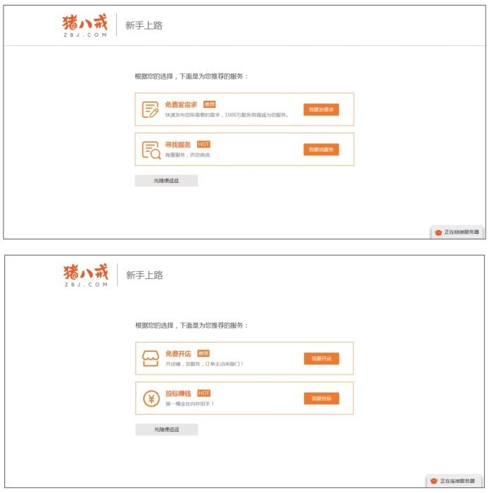 圖7 網(wǎng)用戶入口頁面(上為雇主頁面,下為服務(wù)商頁面)