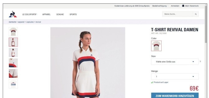 攝影類圖片來(lái)自攝影,圖片能夠直觀地表現(xiàn)主題,側(cè)重于如實(shí)地表現(xiàn)產(chǎn)品本身,因此,電子商務(wù)類網(wǎng)站尤其青睞高清的攝影類圖片。如Lecoqsportif官網(wǎng)(見(jiàn)圖1)的所有圖片均為服裝鞋類的真實(shí)照片拍攝,且對(duì)圖片質(zhì)量要求很高。對(duì)于重要信息,詳情頁(yè)面會(huì)給出高清的細(xì)節(jié)圖片,幫助用戶多方位了解商品的屬性、細(xì)節(jié)及產(chǎn)品上身效果。