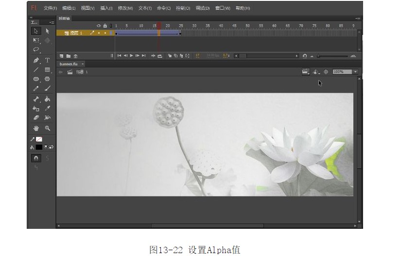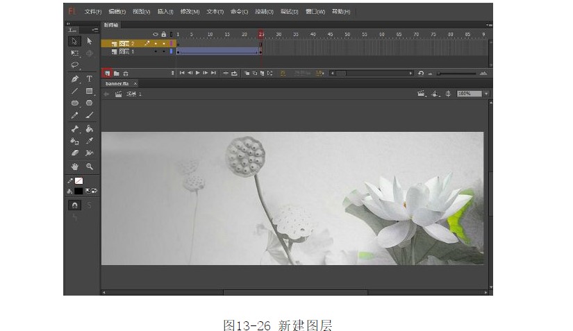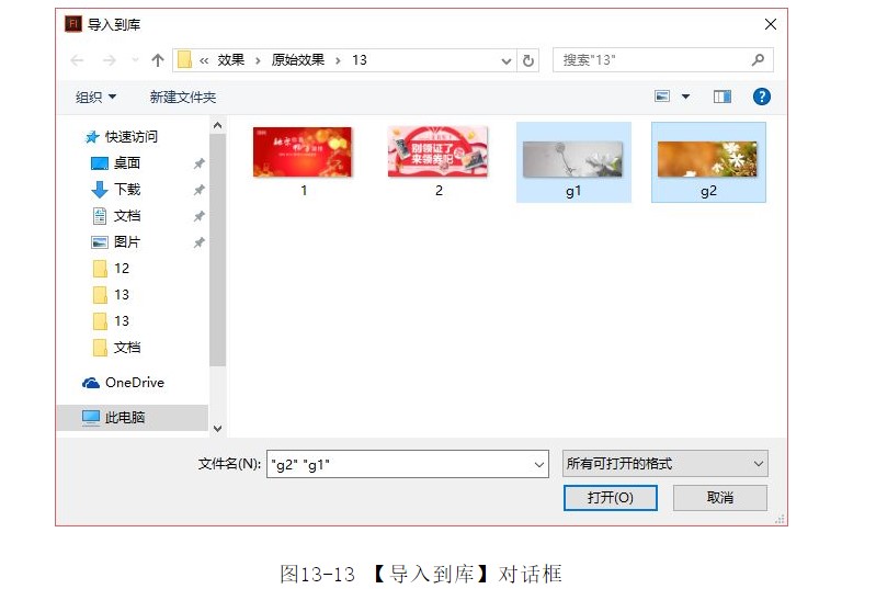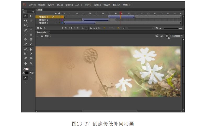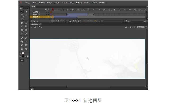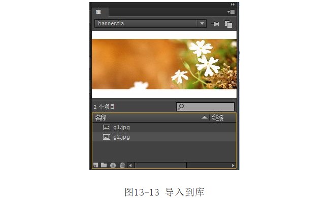 26.單擊【確定】按鈕,進(jìn)入元件3的編輯模式。從庫(kù)面板中將圖像“g2.jpg”拖入編輯區(qū),調(diào)整其位置,如圖13-33所示。