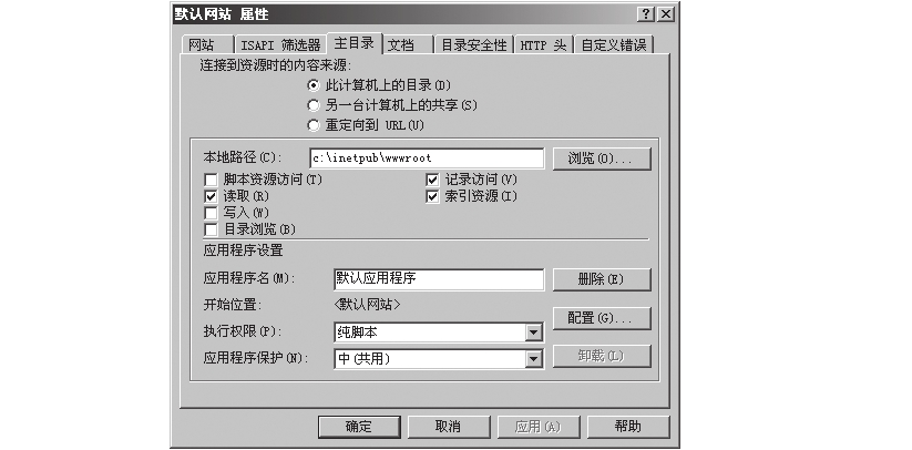 在本地路徑輸入框后單擊【瀏覽】按鈕可以更改網(wǎng)站所在文件位置,默認(rèn)目錄為C:\Inetpub\wwwroot。