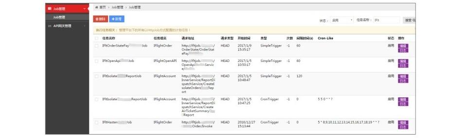 任務(wù)調(diào)度Job如同數(shù)據(jù)庫(kù)作業(yè)或Windows計(jì)劃任務(wù),是分布式系統(tǒng)中異步和批處理的關(guān)鍵。我們的Job分為WinJob和HttpJob:WinJob是操作系統(tǒng)級(jí)別的定時(shí)任務(wù),使用開源的框架Quartz.NET實(shí)現(xiàn);而HttpJob則是自主研發(fā)實(shí)現(xiàn)的,采用URL方式可定時(shí)調(diào)用微服務(wù)。HttpJob借助集群巧妙地解決了WinJob的單點(diǎn)和發(fā)布問題,并集中管理所有的調(diào)度規(guī)則,調(diào)度規(guī)則有簡(jiǎn)單規(guī)則和Cron表達(dá)式。HttpJob簡(jiǎn)單易用,但間隔時(shí)間不能低于1分鐘,畢竟通過URL方式來調(diào)度并不高效。下圖是HttpJob的管理后臺(tái)。