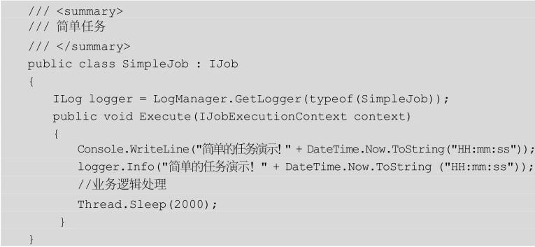在業(yè)務邏輯層繼承IJob接口,并實現Execute方法,在該方法內實現需要調度的業(yè)務邏輯,相應的代碼如下所示。