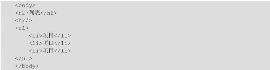 這段代碼由<body>、<h2>、<hr/>、<ul>和<li>這些標(biāo)簽組成,body元素作為主體,其他的元素都嵌套在body元素開始標(biāo)簽和結(jié)束標(biāo)簽的內(nèi)部,作為body元素的內(nèi)容。h2元素表示元素的標(biāo)題。<hr/>元素的內(nèi)容為空,用于創(chuàng)建一條水平線,所以在開始標(biāo)簽中直接使用結(jié)束標(biāo)簽。ul和li元素用于表示列表,分別由對應(yīng)的開始標(biāo)簽和結(jié)束標(biāo)簽組成,li元素作為ul元素的內(nèi)容,而文字“項目”作為li元素的內(nèi)容。HTML元素有很多,在本書的講解中,我們將逐步介紹一些常用元素的使用方法。HTML元素按功能類別排列,可以分為以下幾種。