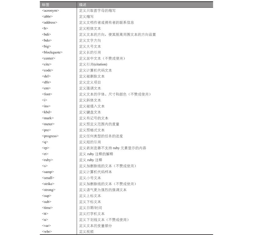 (2)格式相關(guān)的元素,表4.2列出了一些常用的格式相關(guān)的元素。表4.2