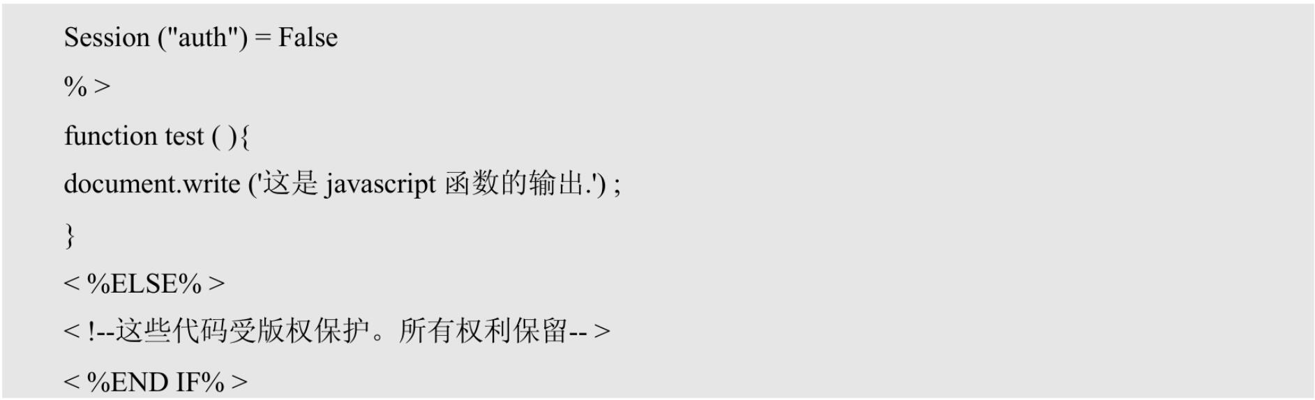 如果要在Web頁面中保護頁面實際內(nèi)容的HTML代碼,用戶可以在js.asp文件中創(chuàng)建一個函數(shù),如下所示: