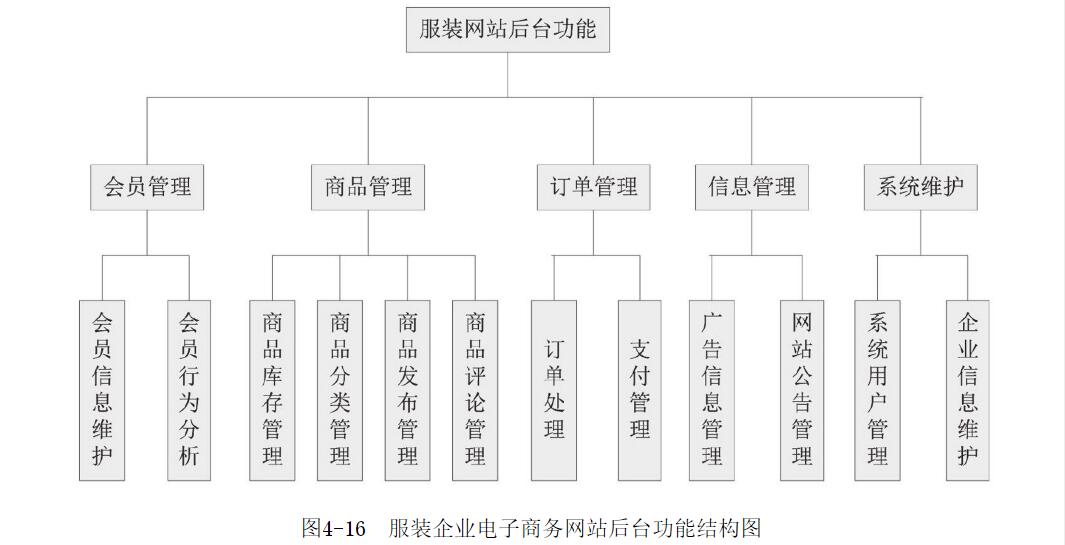 圖4-16 服裝企業(yè)電子商務(wù)網(wǎng)站后臺功能結(jié)構(gòu)圖
