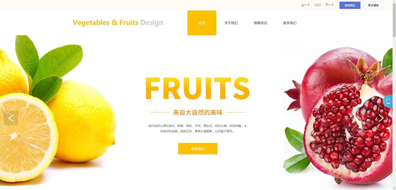 文字間的行距、字距也屬于很重要的一種留白元素。像以下這個(gè)來(lái)自“福田建站”的蔬果行業(yè)網(wǎng)站模板,中間的文案采用了不同的字體、顏色、大小、間距拉開(kāi)了對(duì)比,讓文案變得更容易閱讀。
