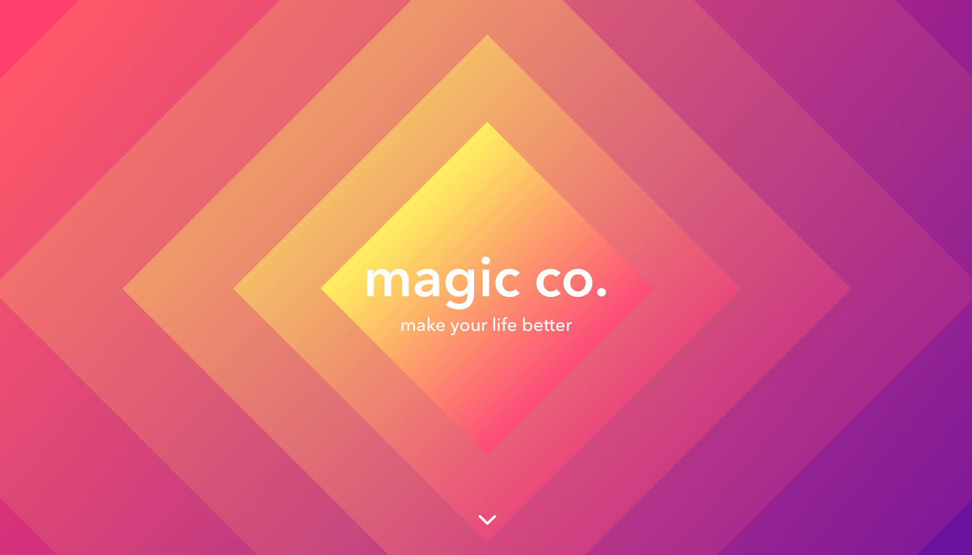 接下來是比較關鍵的 UI設計的過程了。由于頁面的第一部分,也就是首屏,只包含有公司的名稱、Slogan 和引導用戶向下滾動瀏覽的箭頭,所以我們認為這個部分需要創(chuàng)造出一個色彩明亮、引人矚目的背景。設計師開始試圖將不同的抽象元素排列組合起來,并且做好讓這些元素動畫化的準備。第一個變體是基于菱形元素和矩形元素來構建,這些幾何圖形邊緣等距,加入漸變色彩,營造出豐富的層次感。不過,在探索過程中,設計師發(fā)現(xiàn)可能柔和的曲線元素會更加友好,一方面是視覺上得以友好度更高,另一方面是它的寓意會更貼合產品。加入動效之后,整個頁面會顯得更加生動。