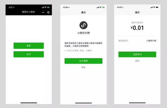 同時本次升級之后,開發(fā)者可在插件內(nèi)調(diào)用微信支付能力,為用戶提供預(yù)訂、購買等服務(wù)。開發(fā)者可在插件管理后臺申請此能力,通過后可在插件內(nèi)使用微信支付功能。