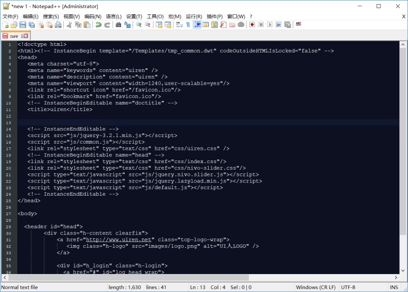 △ 深圳網(wǎng)站制作前端工程師代碼編譯(工具:Notepad +)