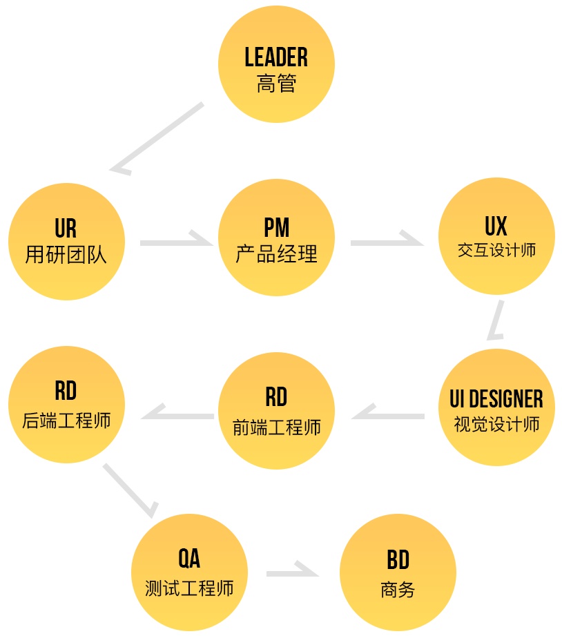 互聯(lián)網(wǎng)公司的產(chǎn)品線是一個流水線?;ヂ?lián)網(wǎng)產(chǎn)品團(tuán)隊指的是整個團(tuán)隊圍繞著一個產(chǎn)品打造,并且以設(shè)計開發(fā)完成該產(chǎn)品為目標(biāo)的團(tuán)隊。比如微信團(tuán)隊、支付寶團(tuán)隊等?;ヂ?lián)網(wǎng)產(chǎn)品有可能是移動端,也可能是電腦端。也可能同時開展多個產(chǎn)品線等。我們按部門可以把他們分為:管理層、產(chǎn)品部、研發(fā)部、市場部。設(shè)計團(tuán)可能單獨成立部門也可能融合在產(chǎn)品部門里?;ヂ?lián)網(wǎng)產(chǎn)品團(tuán)隊按角色可分為: