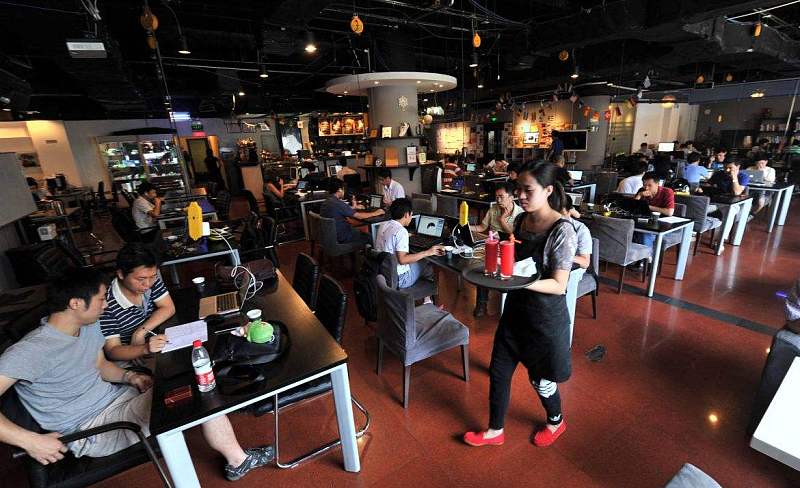 △ 創(chuàng)業(yè)咖啡文化成為熱潮,圖為北京某咖啡館內(nèi)眾多創(chuàng)業(yè)團(tuán)隊在工作。來源:網(wǎng)絡(luò)