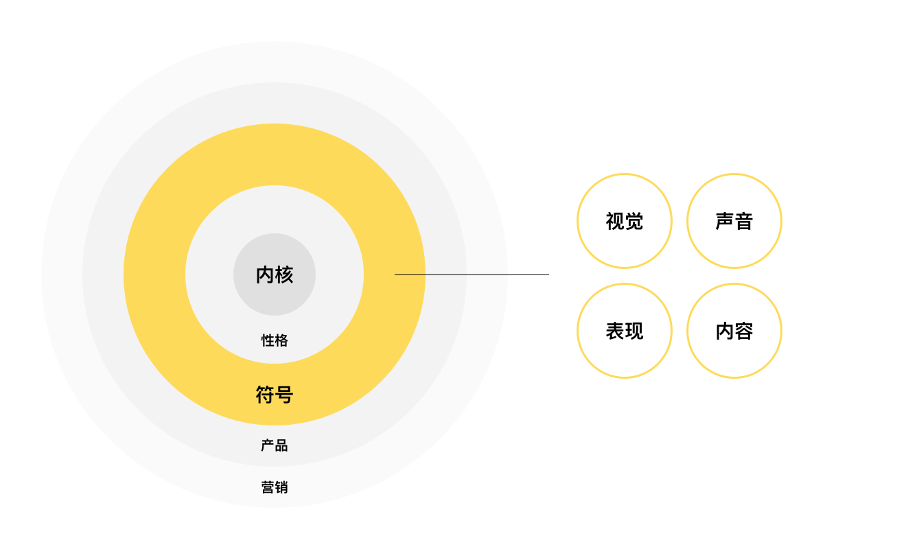 用戶通過各種類型的營(yíng)銷方式接觸到我們的產(chǎn)品,感知到我們的品牌符號(hào),從而了解我們的品牌性格及內(nèi)核,運(yùn)營(yíng)活動(dòng)是用戶感知我們的一個(gè)主要場(chǎng)景。用戶從外到內(nèi)感知到我們,我們從內(nèi)而外逐步具像化信息使用戶感知,通過品牌符號(hào)來具像化設(shè)定,讓用戶明確的感受到我們的視覺、聲音、表現(xiàn)、內(nèi)容是什么樣子的。這些標(biāo)志性的符號(hào)代表了品牌內(nèi)核要傳達(dá)的內(nèi)容,也映射了我們的品牌性格和內(nèi)核,使用戶直觀的感受我們的品牌。作為設(shè)計(jì)師我們的本職工作是關(guān)注并定義視覺符號(hào)的內(nèi)容,其中包含了顏色、logo、字體、圖形、影響等視覺層面的內(nèi)容。但品牌對(duì)于用戶而言是一種多維度的感知,并不是某一種單獨(dú)的感受,所以也需要我們盡可能豐富其他維度的品牌符號(hào),比如文案風(fēng)格,聲音語(yǔ)言系統(tǒng),實(shí)現(xiàn)形式上的具像化。定義品牌的視覺符號(hào),首先我們需要清楚品牌的內(nèi)核及性格是什么。