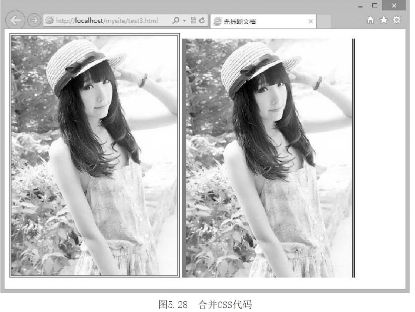 其顯示效果如圖5.28所示,可以看到代碼的長度明顯減少,這樣不但清晰易讀,而且大大加快了網(wǎng)頁下載速度。