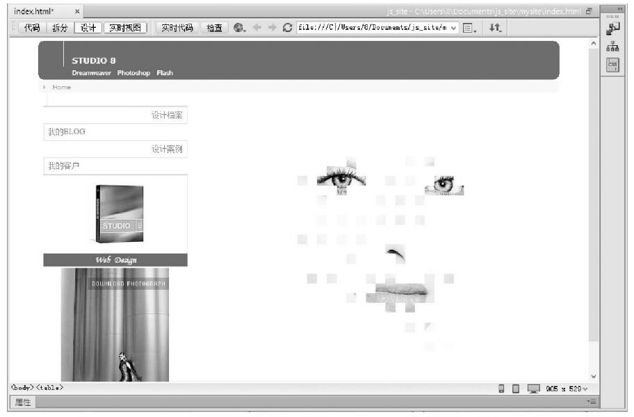 通過設(shè)置表格背景圖像屬性可以制作些圖像特效,例如,給圖像鑲邊、遮掩部分圖像實(shí)現(xiàn)圖像的虛化顯示等效果。本例就是利用這個(gè)方法實(shí)現(xiàn)制作圖像殘缺效果,效果如圖6.38所示。