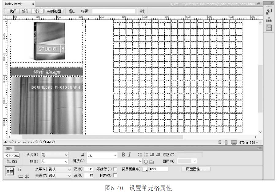 第2步,拖選所有單元格,設(shè)置所有單元格大小為15×15像素,背景為白色,則把表格的背景圖像遮蓋住,如圖6.40所示。