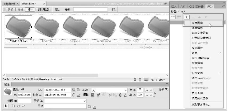 網(wǎng)站設計翻轉按鈕實操示意圖選擇【交換圖像】命令