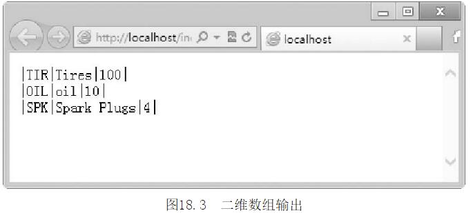 從這個定義中可以看出$products數組包含3個子數組。前面介紹過,訪問一維數組中的數據時,需要使用數組的名稱和元素的索引。除了一個元素具有兩個索引(行和列)外,二維數組和一維數組是類似的(最上邊的是第0行,最左邊的是第0列)。