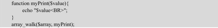 【示例2】這個用戶自定義函數(shù)是一個以指定格式顯示各個元素的函數(shù)。如下所示的代碼通過在$array數(shù)組的每個元素中調(diào)用用戶自定義的my_print()函數(shù),從而將每個元素顯示在一個新行中。