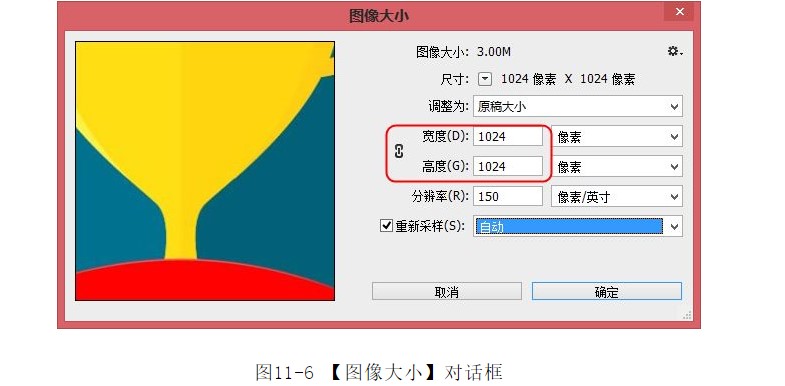 ?選擇菜單中的【圖像】|【圖像大小】命令,彈出如圖11-6所示的【圖像大小】對(duì)話框,設(shè)置圖像的【高度】和【寬度】。
