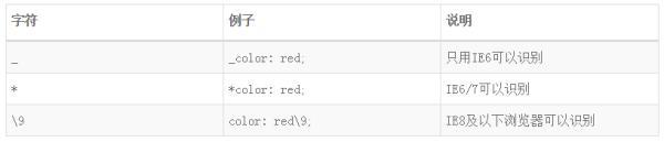 針對(duì)不同的 IE 瀏覽器,可以使用不同的字符來(lái)對(duì)特定的版本的 IE 瀏覽器進(jìn)行樣式控制