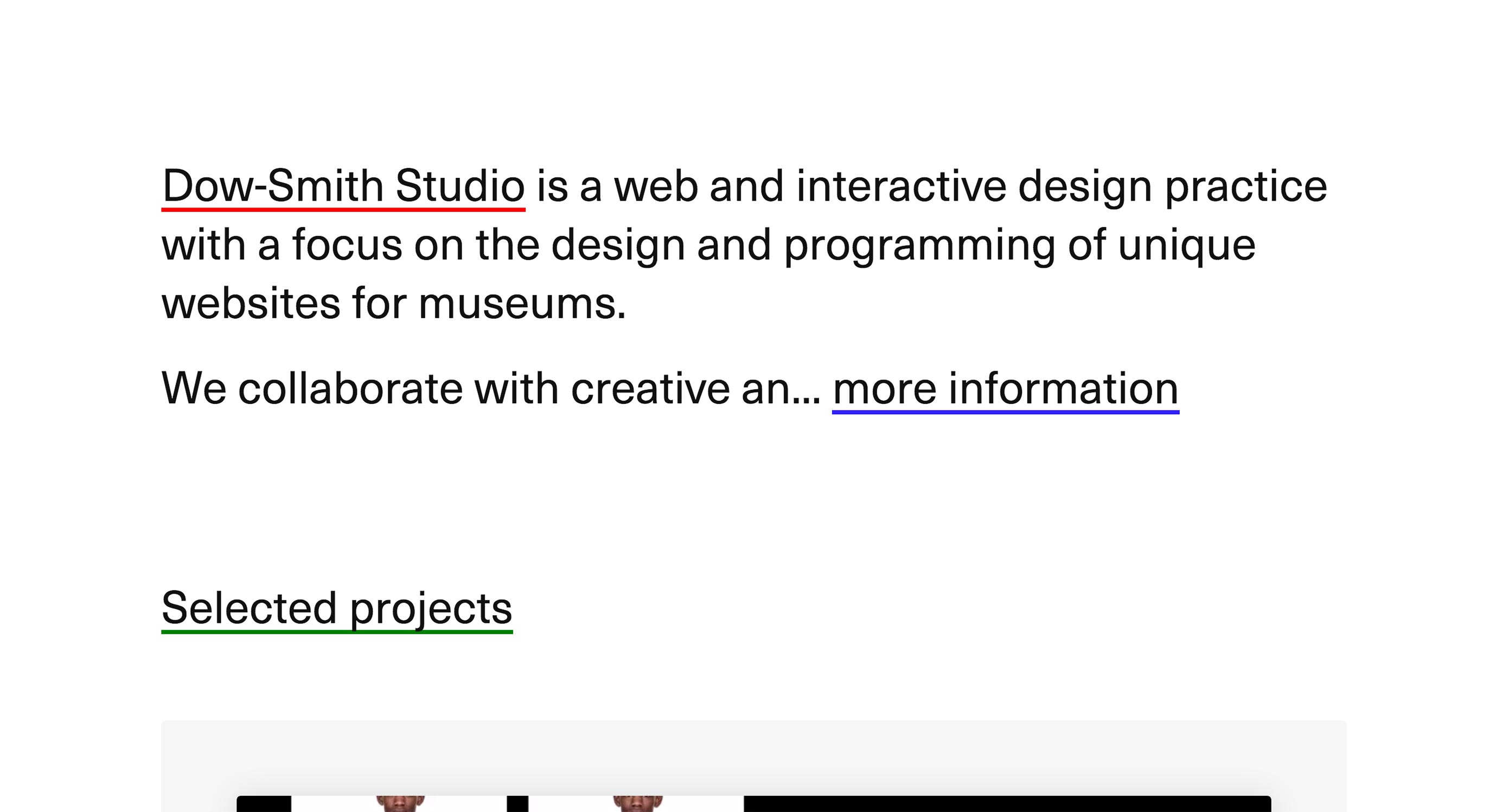 Dow Smith 一直堅持設(shè)計簡約的網(wǎng)站,而他的這種執(zhí)念似乎越來越深了。他對于留白有著近乎瘋狂的熱愛,配合纖細的字體,他的網(wǎng)站基調(diào)就這么定了下來。
