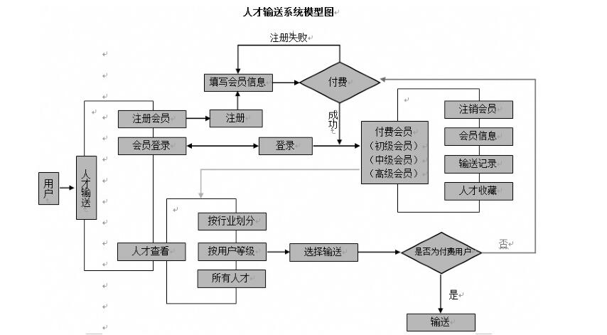 (3)人才輸送等級用戶人才庫用戶分為初級會員、中級會員、高級會員共3個等級。注冊成為普通用戶后,通過付費即可成為相應(yīng)等級的用戶。初級會員可以輸送初級工程師,中級會員可以輸送中級工程師,以此類推。成為會員后具有收藏、查看輸送記錄等功能。好了,