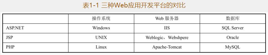表1-1三種Web應用開發(fā)平臺的對比
