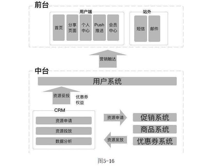 CRM的交互主要是和各系統(tǒng)進(jìn)行營銷資源的申請、發(fā)放等,同時前端的觸達(dá)渠道也需要完成資源核銷和數(shù)據(jù)統(tǒng)計的埋點工作。另外,從業(yè)務(wù)實體上來看,由于CRM使用的是原有系統(tǒng)的營銷資源,因此原則上并不會增加額外的關(guān)系,