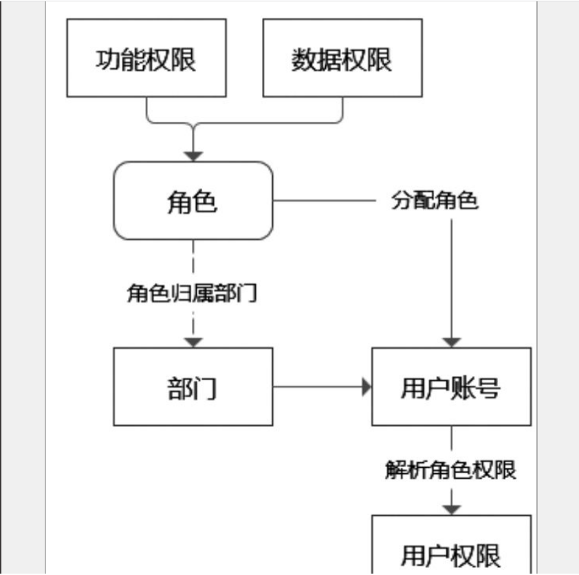 如圖11-4所示,給每個(gè)角色賦予功能權(quán)限、數(shù)據(jù)權(quán)限,有時(shí)會(huì)給角色分組,掛在部門(mén)下面。在新增用戶賬號(hào)時(shí),給用戶分配角色。每個(gè)用戶既可以分配一個(gè)角色,也可以分配多個(gè)角色。根據(jù)用戶的角色,就能獲得用戶的系統(tǒng)權(quán)限。在權(quán)限模型中,構(gòu)建了“用戶一角色―權(quán)限”的授權(quán)模型。