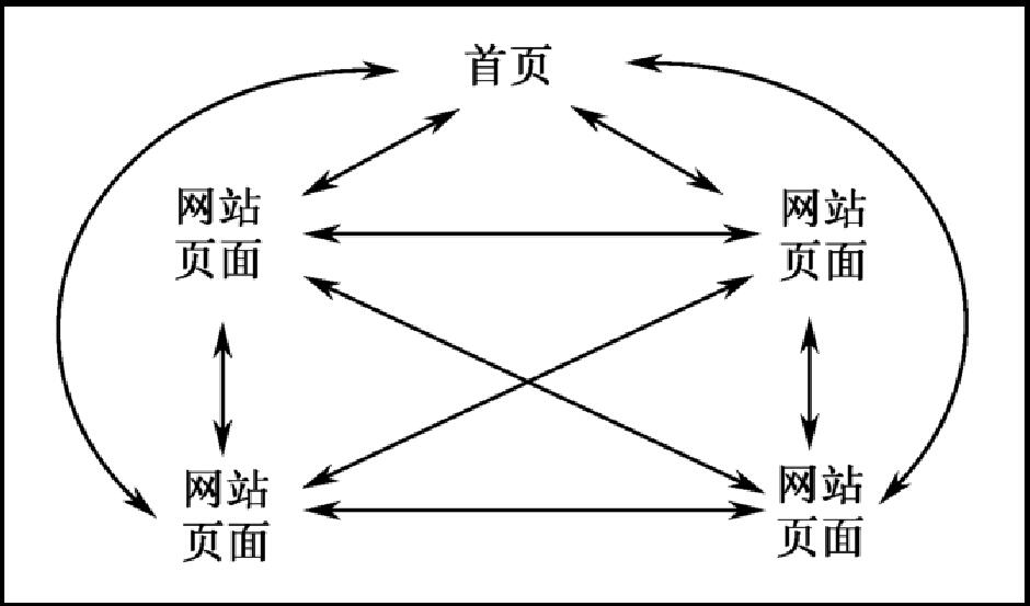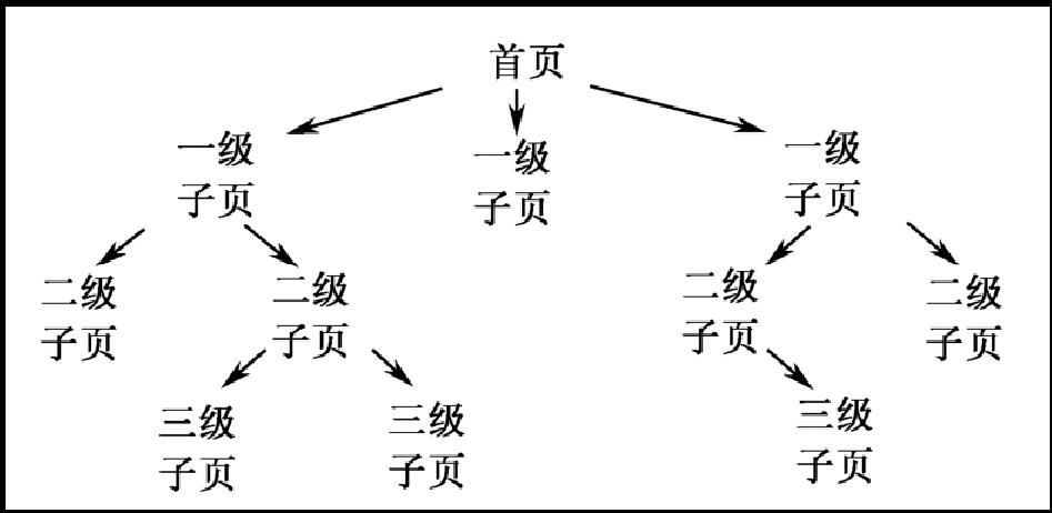 網(wǎng)站的鏈接設計是指網(wǎng)站頁面之間相互鏈接的拓撲結(jié)構(gòu),建立在目錄結(jié)構(gòu)的基礎上。網(wǎng)站的鏈接結(jié)構(gòu)有兩種基本方式:樹狀結(jié)構(gòu)和星狀結(jié)構(gòu)。這兩種基本結(jié)構(gòu)都只是理想方式,在實際的網(wǎng)站設計中,總是這兩種結(jié)構(gòu)混合起來。比較好的方案是:首頁和一級頁面之間用星狀鏈接結(jié)構(gòu),一級頁面和以下各級頁面之間用樹狀結(jié)構(gòu)。樹狀鏈接結(jié)構(gòu)如圖1-18所示。