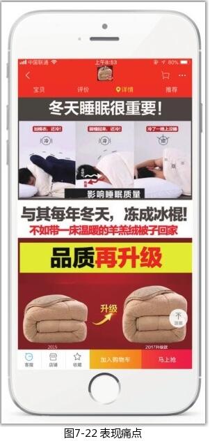 第三張圖片通過挖掘冬天被子不夠暖和給人們帶來的不良影響這一痛點(diǎn),突出羊羔絨被子的保暖作用,如圖7-22所示。
