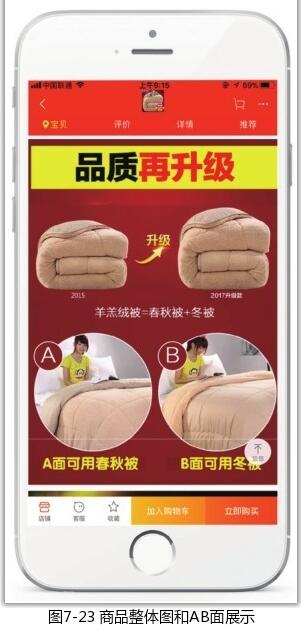 第四張圖片通過商品整體圖和AB面的展示,繼續(xù)強(qiáng)調(diào)“保暖”和“多功能性”的概念,如圖7-23所示。