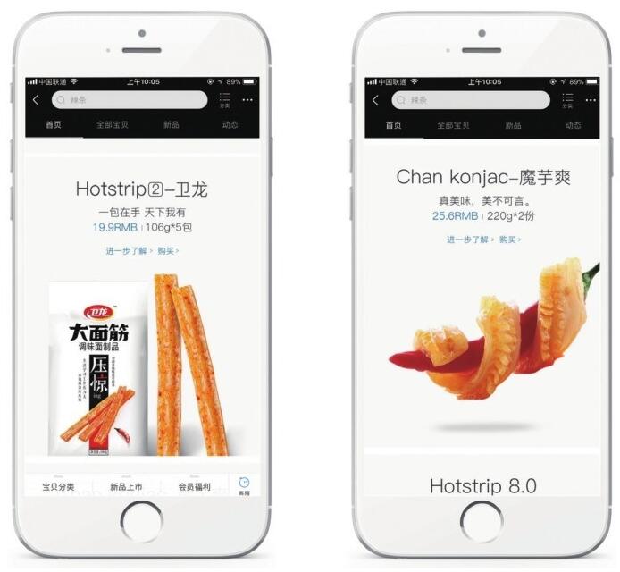 曾經(jīng)吃慣的衛(wèi)龍辣條開始走國際路線,玩起了高大上。其模仿“蘋果風格”設計的天貓旗艦店在網(wǎng)上火了,店鋪不僅起了洋氣的英文名字,而且頁面整體小清新的設計也和蘋果如出一轍。點開衛(wèi)龍辣條最新的官方旗艦店,讓人簡直以為誤闖進了蘋果官方旗艦店,如圖9-14所示。