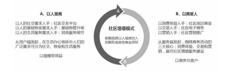 相較之下,以商聚人的周邊生活服務(wù)、社區(qū)電子商務(wù)的市場(chǎng)準(zhǔn)入門檻較低,競(jìng)爭(zhēng)激烈,電商大市場(chǎng)已存在巨頭,而社區(qū)廣告營(yíng)銷的建設(shè)成本太高。以人聚商更具市場(chǎng)價(jià)值,物業(yè)增值服務(wù)可根據(jù)社區(qū)居民的實(shí)際需求來(lái)提供,網(wǎng)絡(luò)社區(qū)論壇已有成熟人聚財(cái)聚模式,但社區(qū)交友最具市場(chǎng)潛力。
