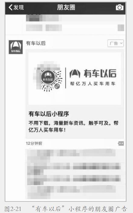 所示為“有車以后”小程序的朋友圈廣告,用戶只需長按識別圖中的二維碼,便可以進入如圖2-22所示