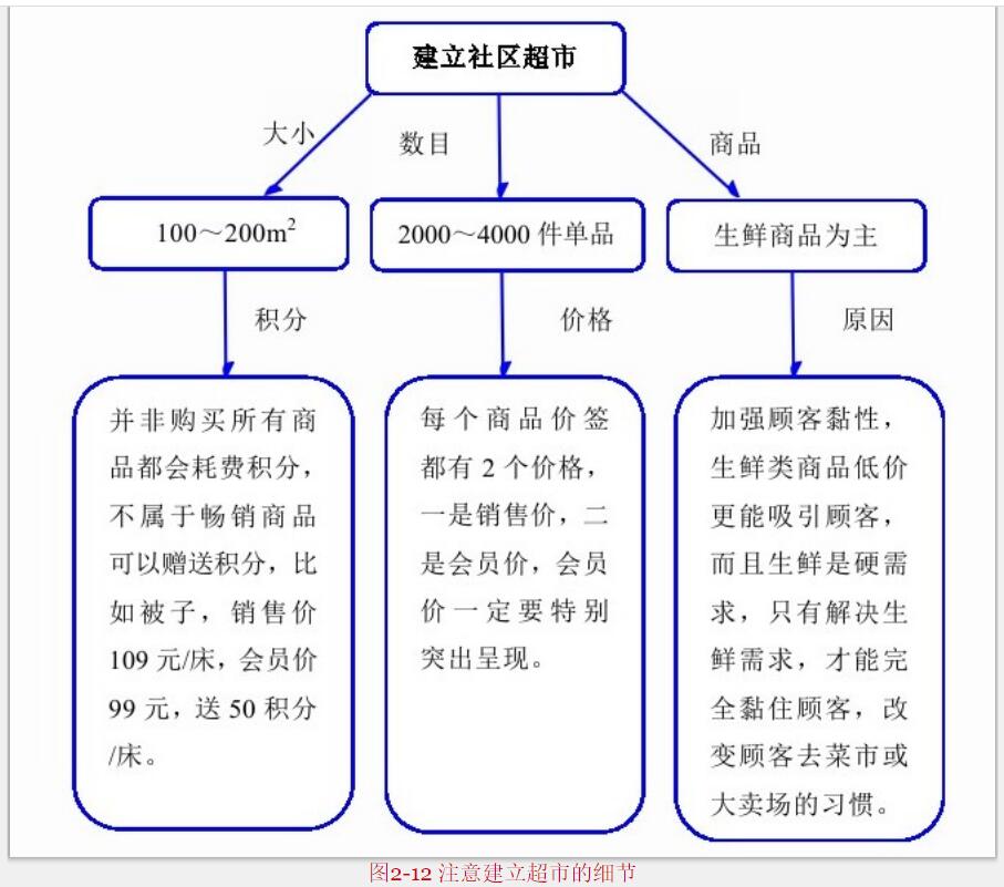 在人口密集社區(qū)建立超市,要注意很多細(xì)節(jié),如圖2-12所示。