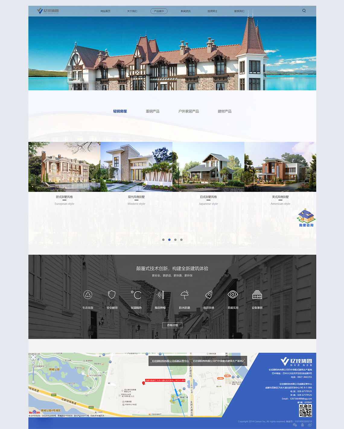 鋼,給人感覺很堅固,因此,網(wǎng)站通過不規(guī)則的形狀展開。以企業(yè)Vl為標(biāo)準(zhǔn),給網(wǎng)站配以藍(lán)色為主色調(diào),灰色為輔色調(diào)。首頁產(chǎn)品展示以環(huán)球中心的圖片處理成淡淡的背景,突出企業(yè)所處的地理位置。通過點(diǎn)、線構(gòu)成的面,就像是無數(shù)的不規(guī)劃的鋼,構(gòu)成了一個漂亮的別墅一樣,我們將設(shè)計融入生活,用生活回歸設(shè)計,有效規(guī)劃設(shè)計布局,合理使用留白空間,創(chuàng)造出一個溫馨的別墅之家。