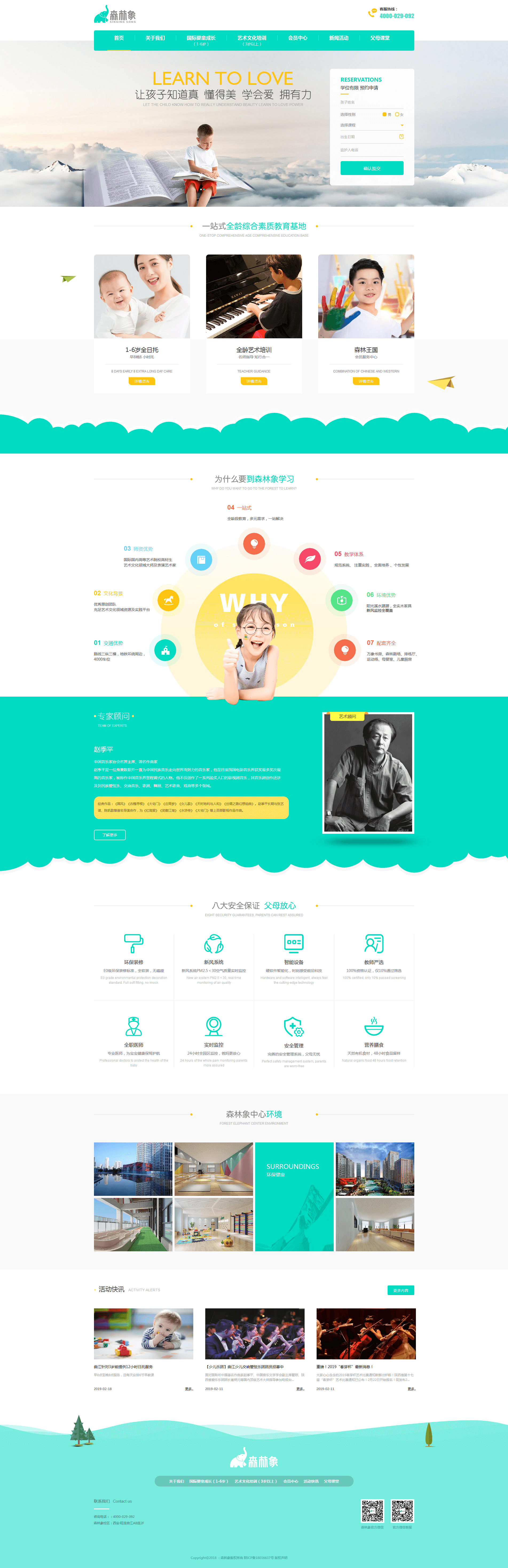 森林象藝術(shù)教育品牌下設(shè)兩個(gè)板塊:國際嬰童成長(zhǎng)中心、國際藝術(shù)學(xué)校,提供專業(yè)的1-6歲全日托、3歲以上藝術(shù)文化培訓(xùn)服務(wù),實(shí)現(xiàn)一站式全齡段教育,致力打造中國綜合素質(zhì)教育領(lǐng)域?qū)I(yè)高端品牌。