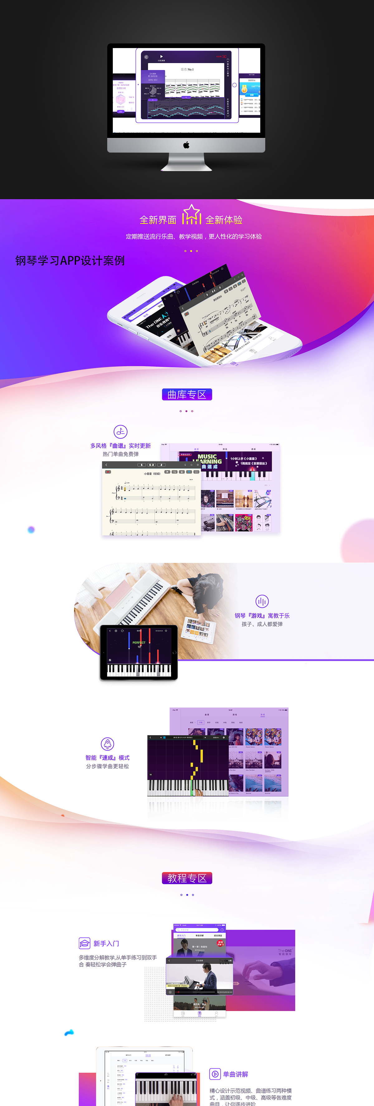 手機APP設計案例:鋼琴學習APP全面、準確地記錄語調(diào),節(jié)奏,速度,力量,表達,等等形式總結反饋;智能評價結果轉換成視覺圖像分析來幫助球員找到問題和提高練習效率;通過智能評分等社會功能,分享經(jīng)驗,和演奏技巧PK,學習鋼琴的興趣是最大程度刺激。