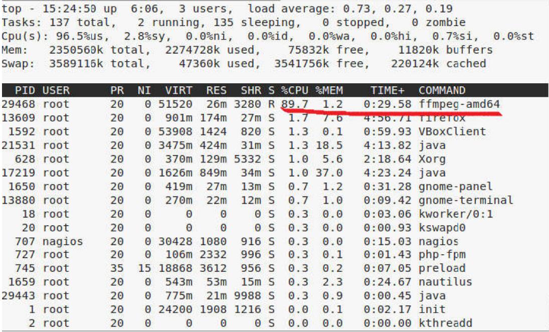 APP開發(fā)視頻處理效果圖3-12調(diào)用FFmpeg時系統(tǒng)的相關(guān)資源狀況