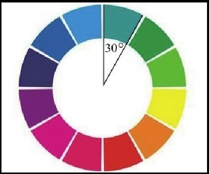 同類(lèi)色是指色相性質(zhì)相同,但色度有深淺之分的顏色(色相環(huán)中30°夾角內(nèi)的顏色),如圖2-2所示。