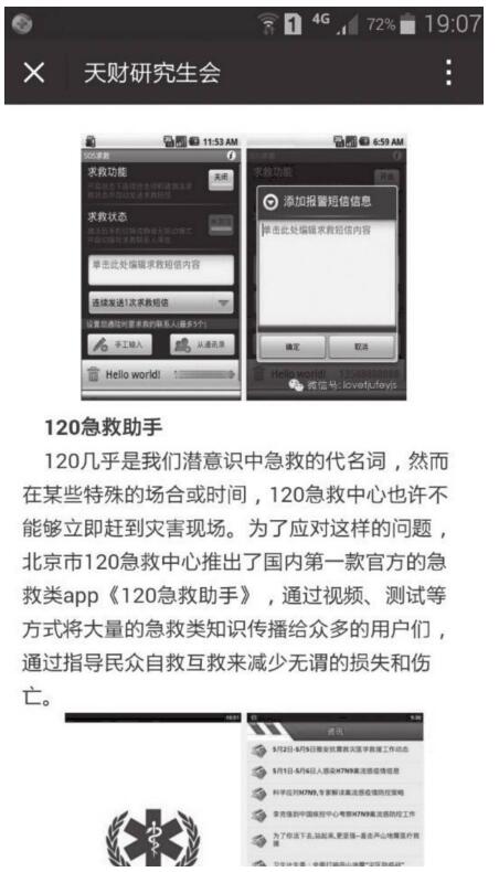 (4)遇險(xiǎn)SOS求救處于危險(xiǎn)時(shí)很多人因?yàn)楦叨染o張而慌不擇路,甚至無法表達(dá)出一句完整的話。如果這樣,也許就會錯(cuò)失自救的機(jī)會,有了“SOS求救”應(yīng)用App,如圖1-4所示,就可以大大避免這些。只要你對其進(jìn)行設(shè)置,一旦遇到困境或危險(xiǎn),手機(jī)就會發(fā)出信號表述你所在的位置,并自動(dòng)撥打設(shè)定號碼,例如,110、120等。而且只要手機(jī)有電,什么情況下都可以撥打,即使沒有手機(jī)卡。