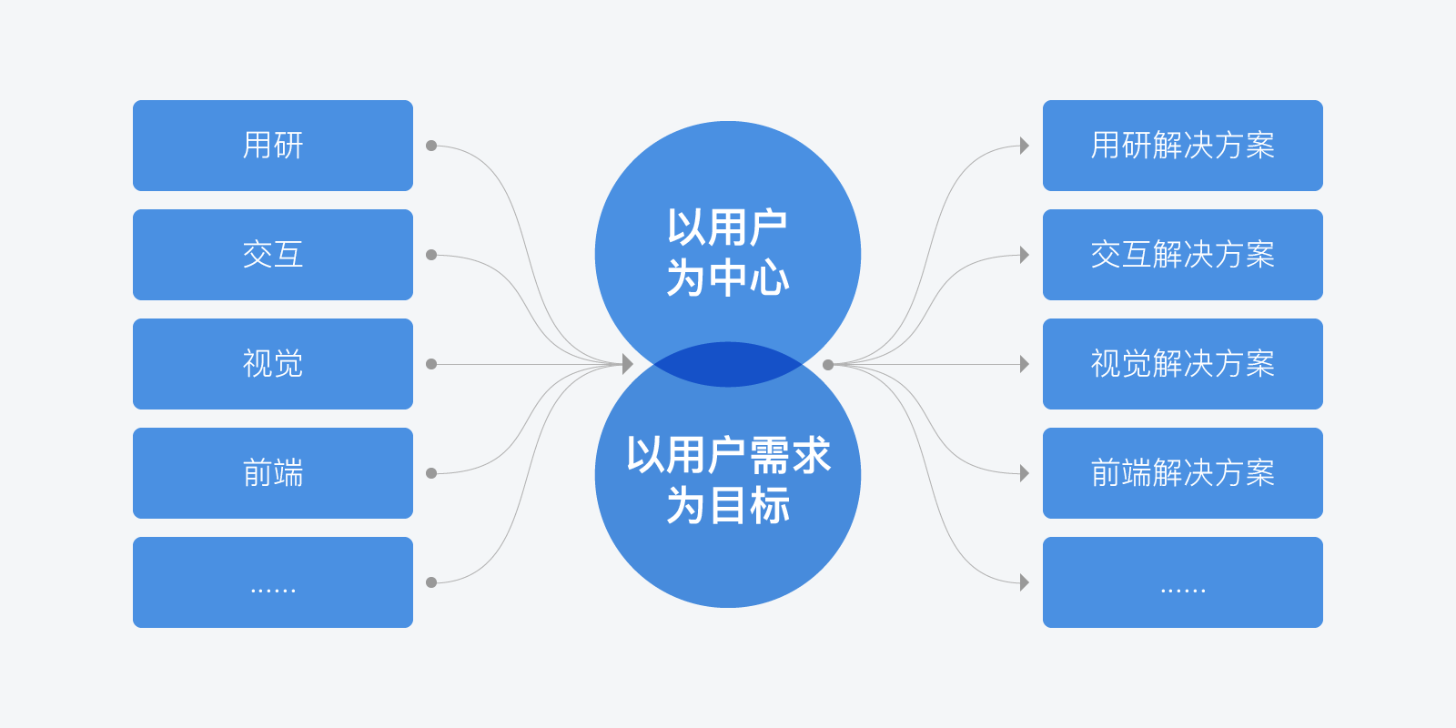 常規(guī)的會細分崗位(交互、視覺、用研、前端等),以用戶為中心在各自的領域進行研究分析,為了共同目標去輸出各自的解決方案。